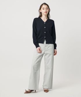 体のラインを拾いすぎないよう、シルエットにこだわって仕上げたカーディガン。