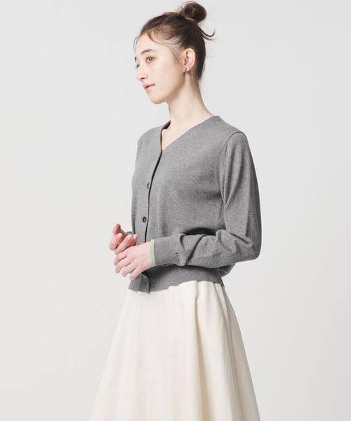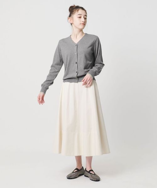 体のラインを拾いすぎないよう、シルエットにこだわって仕上げたカーディガン。