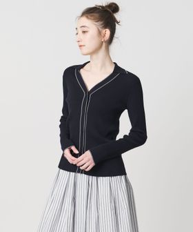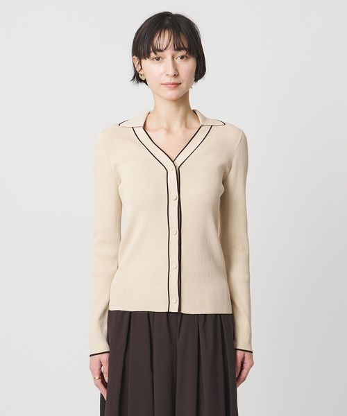 一枚着でも羽織りでも。配色が引き立つリブカーディガン
