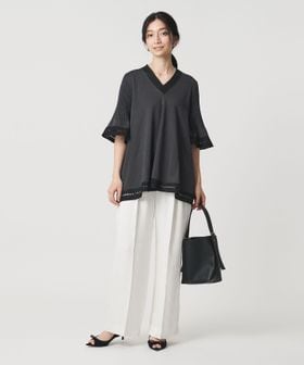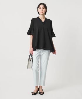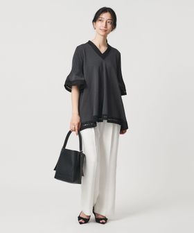 程よく開いたVネックがデコルテを美しく、顔周りをすっきりと見せてくれます。