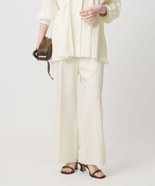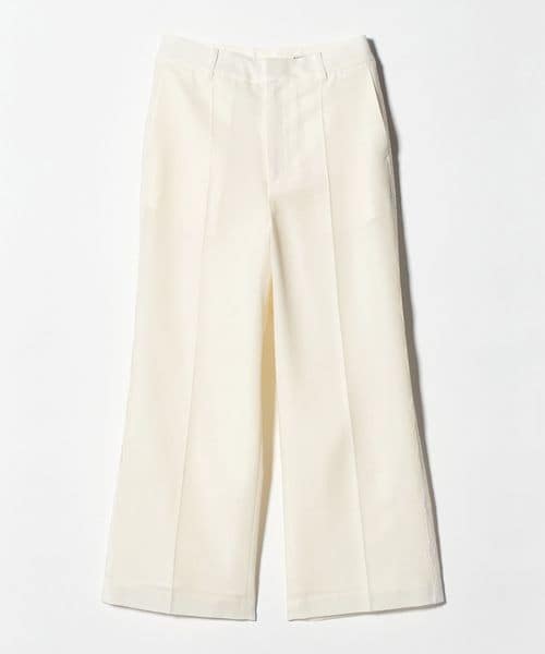 ノータック仕様で、ウエストからヒップにかけてすっきりとしたラインを描く、ややワイドなストレートパンツ。