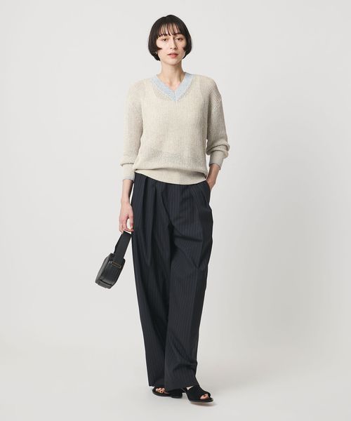 どんなボトムスとも好相性ですが、ワイドシルエットのパンツと合わせるとよりバランスよく着こなせます。