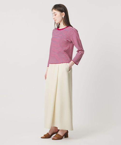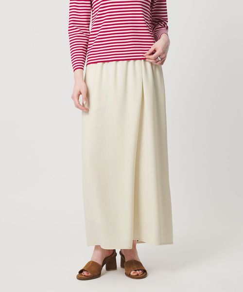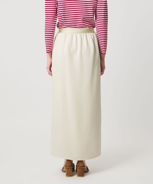 ラップ風のフロントタックが立体感な美しいフォルムを作るタイトスカート。