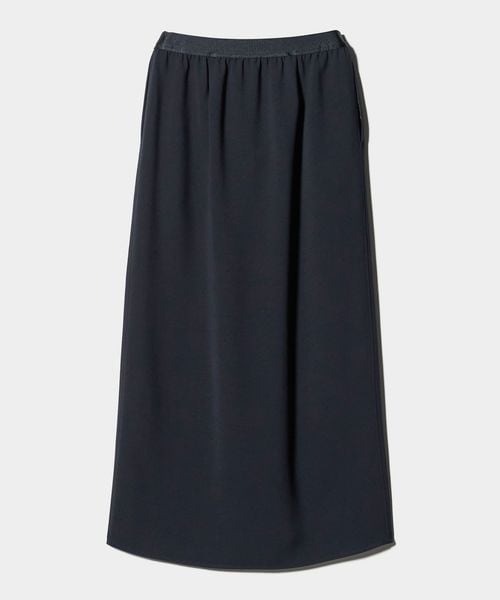 ラップ風のフロントタックが立体感な美しいフォルムを作るタイトスカート。
