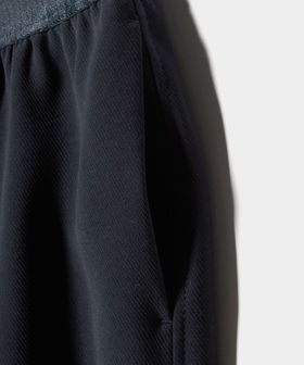ウエストゴムはコーディネートのアクセントになり、リラックスモードな着回しの利く一着です。