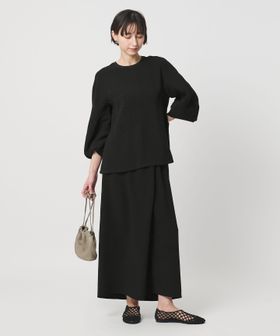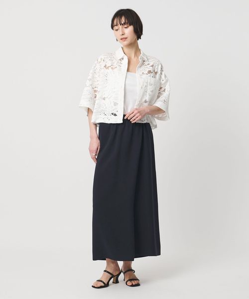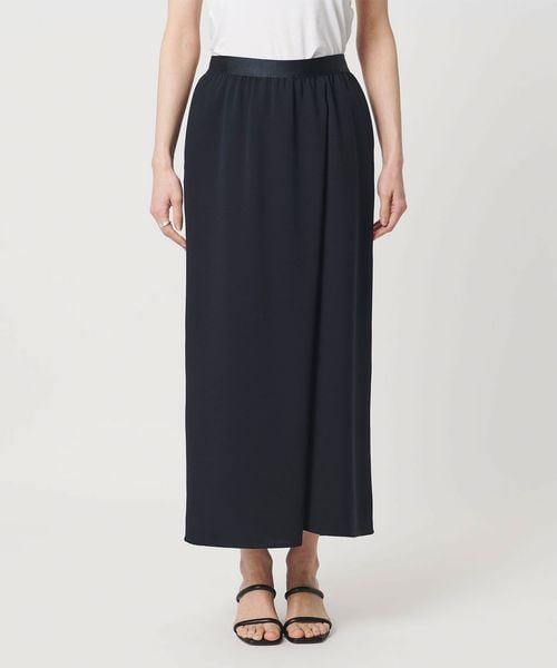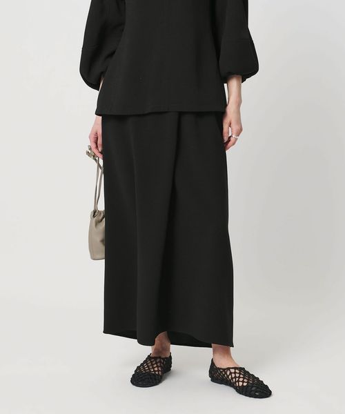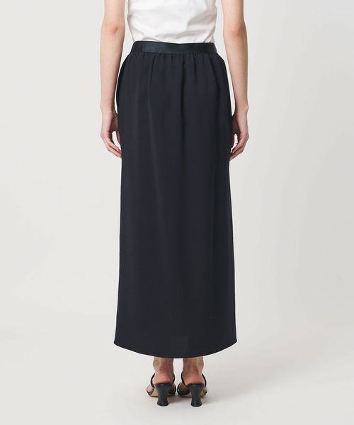 ラップ風のフロントタックが立体感な美しいフォルムを作るタイトスカート。