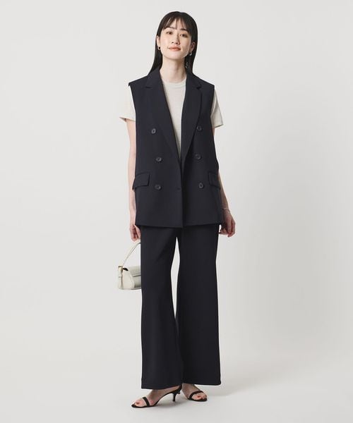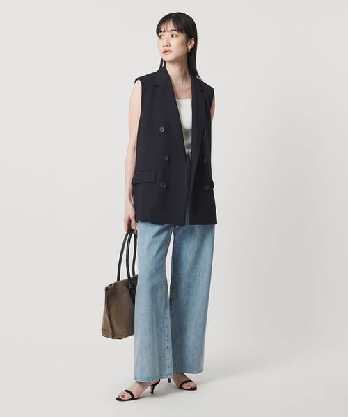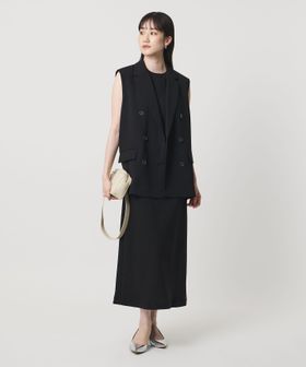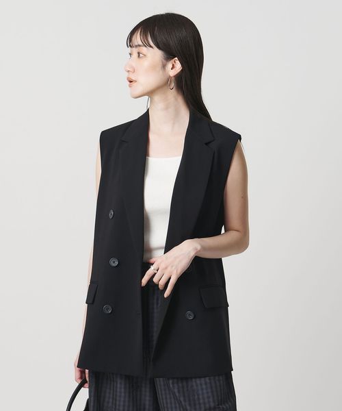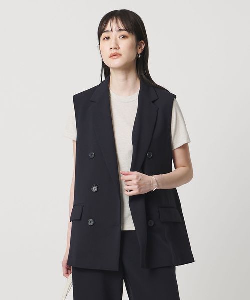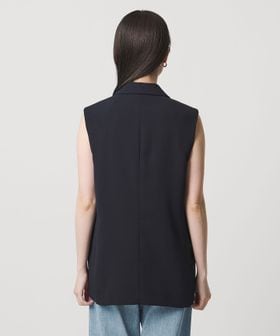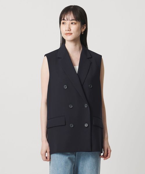 薄い肩パット入りでダブルブレスト設定のテーラードベスト。