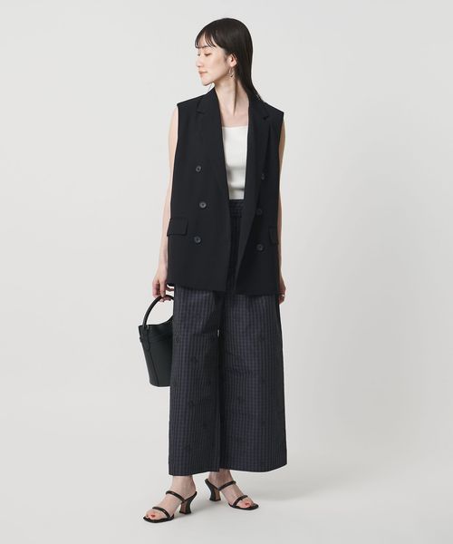 同素材のパンツやワンピースとのセットアップ合わせもおすすめ。