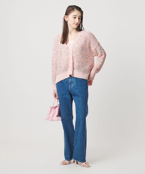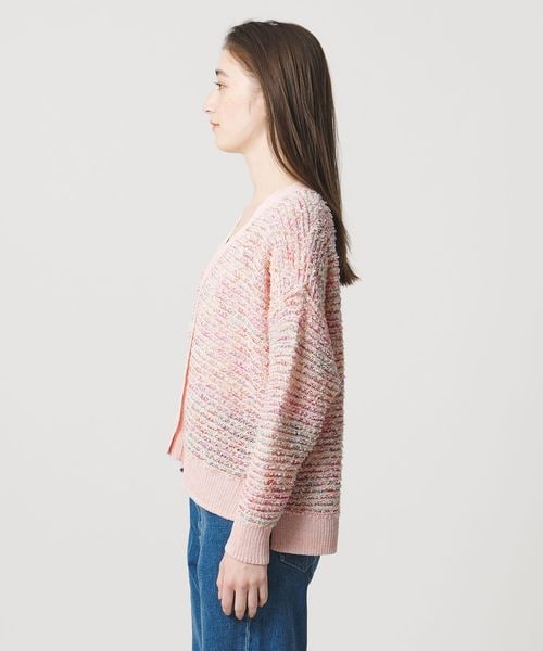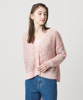 華やかで立体感のある編地と、春らしいミックスカラーが魅力のニットカーディガン。