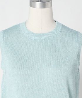 ほのかなラメ感がシンプルな中に華やかさを演出するニットベスト