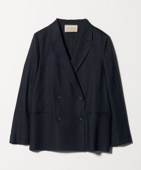 ウエストをあまり絞らず、ボックスシルエットで仕立てた4つボタンのダブルブレストテーラードジャケット。
