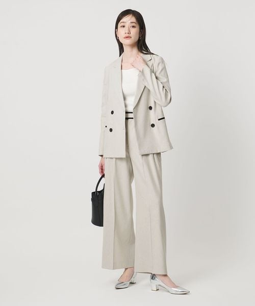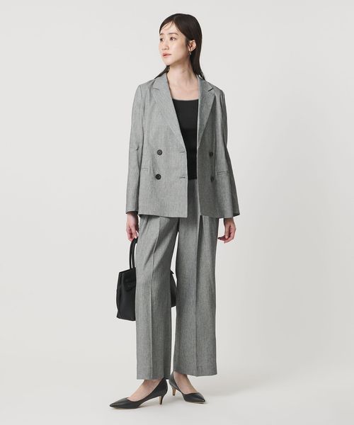 同素材のパンツとのセットアップはもちろん、ワイドパンツやワンピースに重ねるスタイリングも相性がよく、さまざまな着こなしを楽しめます。