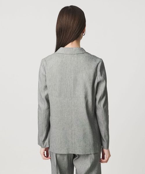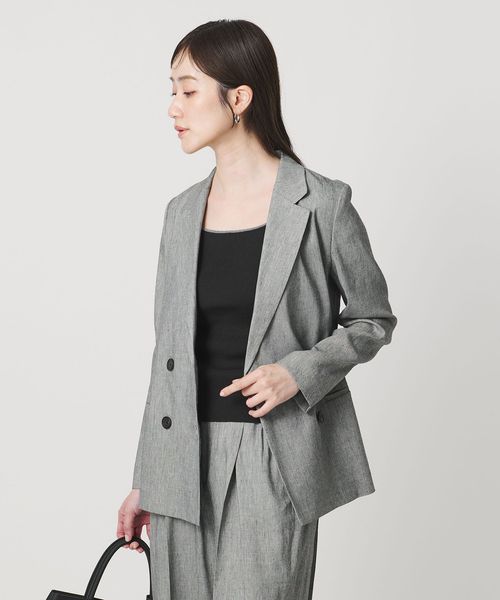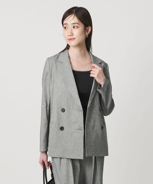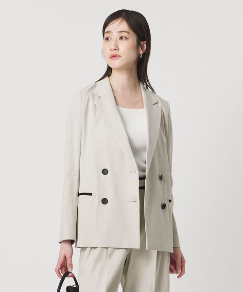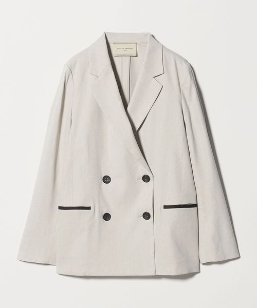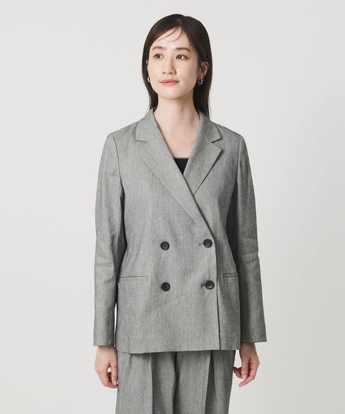 ウエストをあまり絞らず、ボックスシルエットで仕立てた4つボタンのダブルブレストテーラードジャケット。