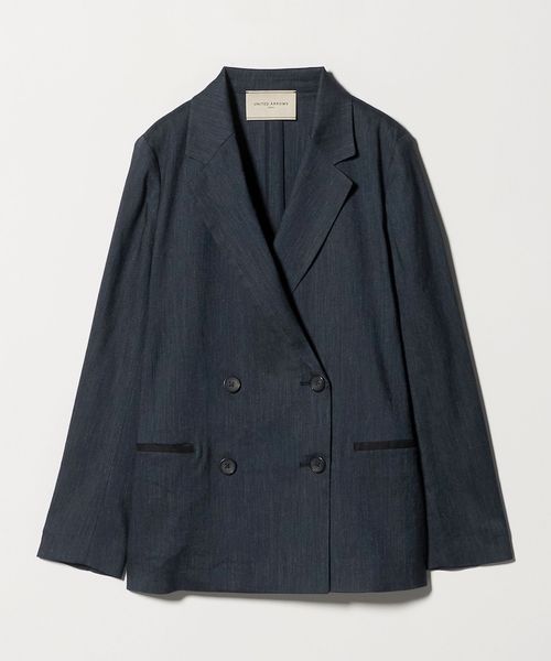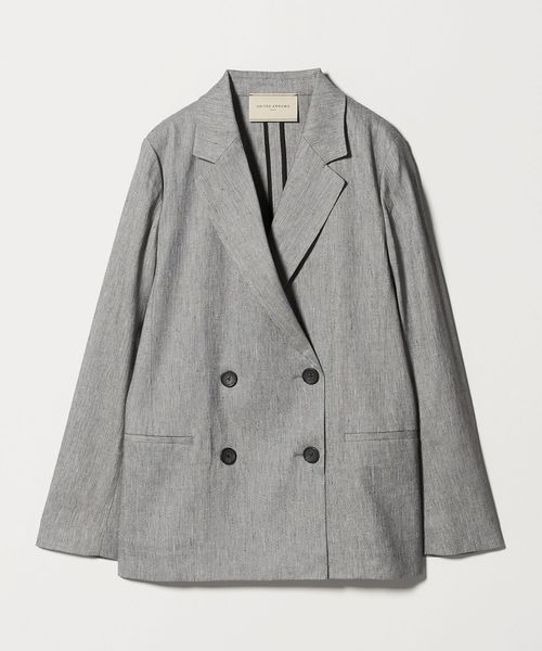 ウエストをあまり絞らず、ボックスシルエットで仕立てた4つボタンのダブルブレストテーラードジャケット。