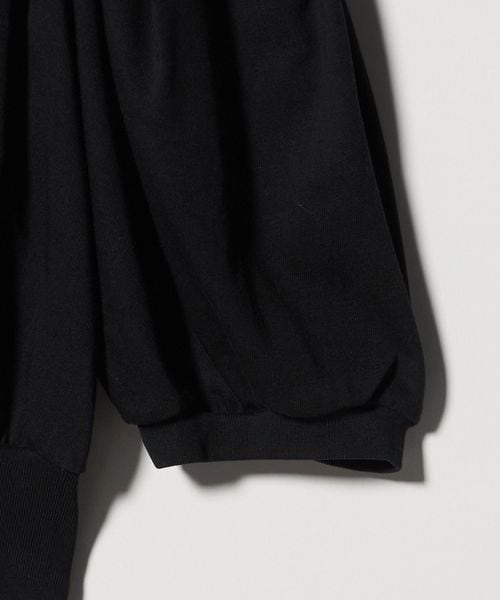 コンパクトな丈に対して、ギャザーを寄せたボリュームスリーブがメリハリのあるシルエットをつくり、エレガントさの中にほどよい個性プラス。