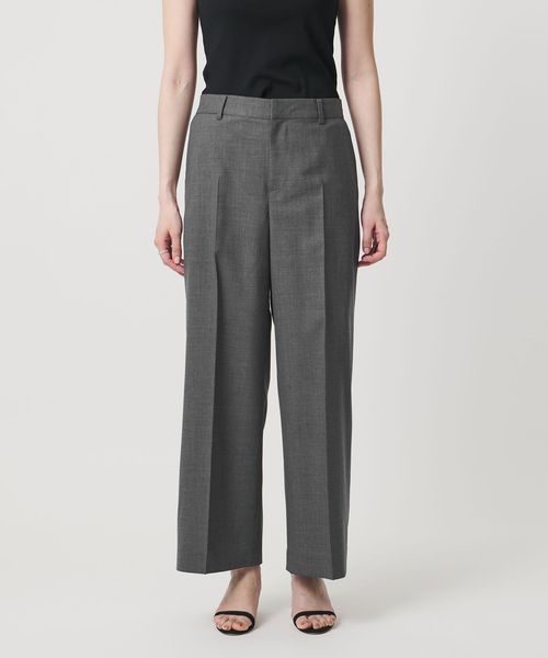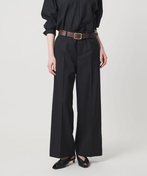素材の風合いを引き立てる、ミニマルでマニッシュな印象のワイドパンツ。