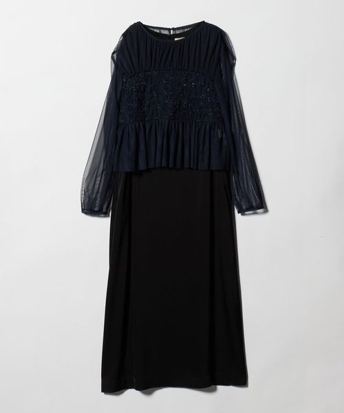 トップスとワンピースがセットになった、セミフォーマルに使えるワンピース。