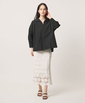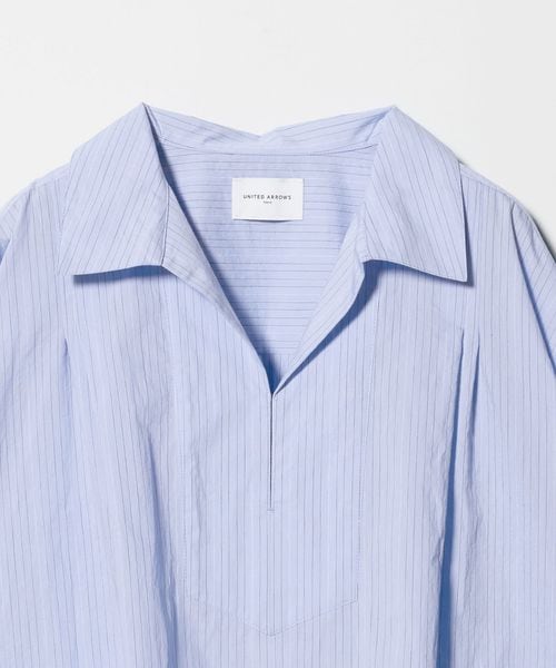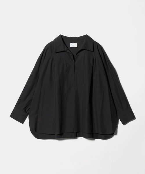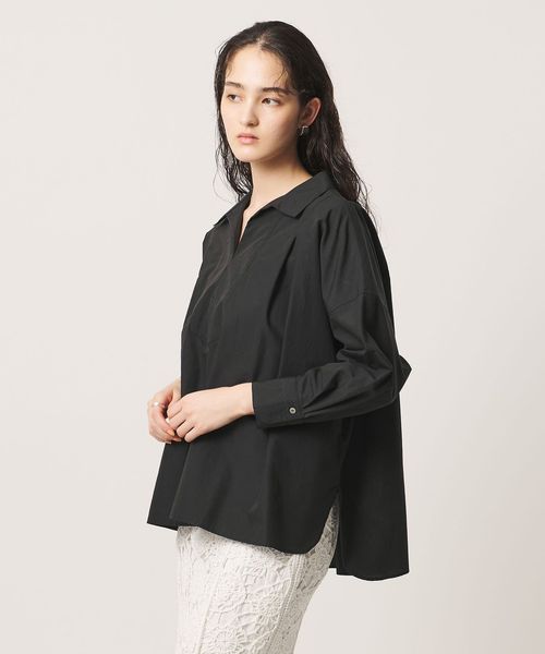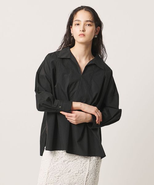 顔まわりをすっきり見せるスキッパー襟がポイントのブラウス。