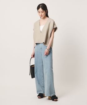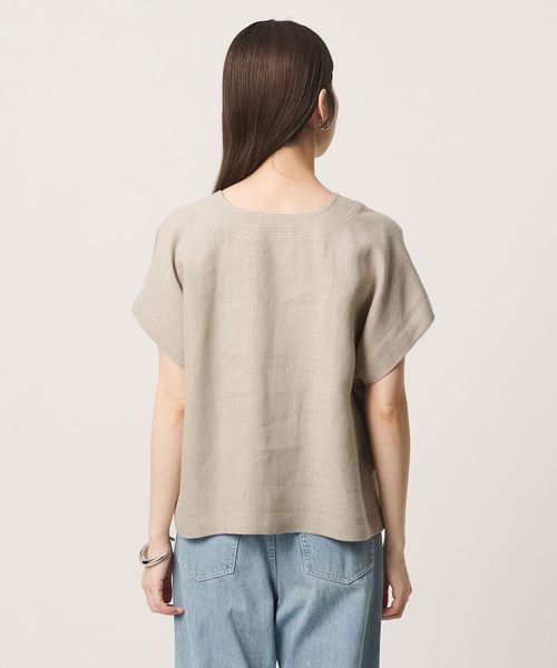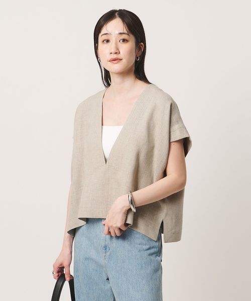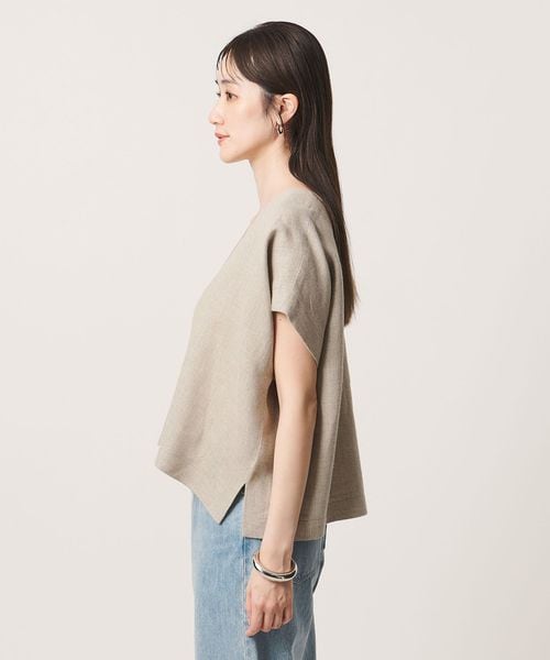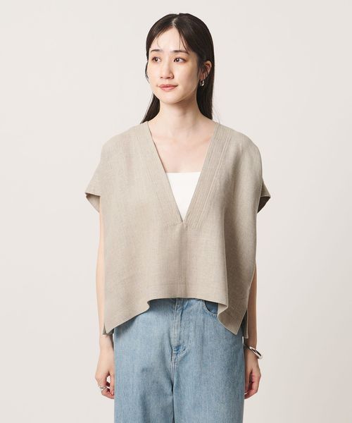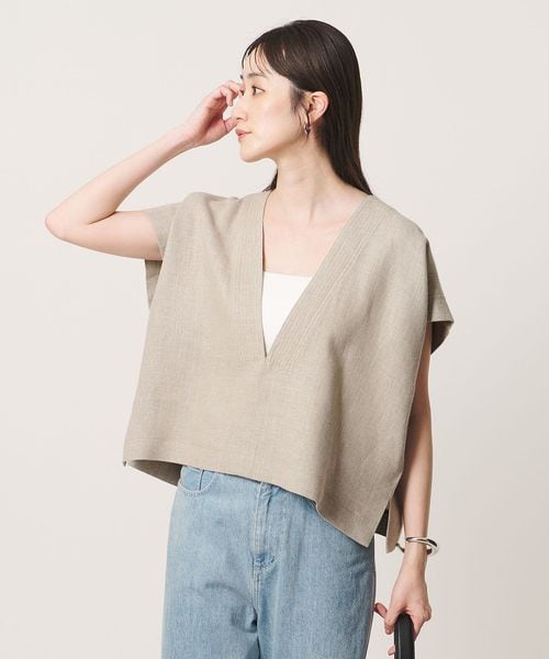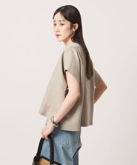 深くカットしたVネックラインとゆったりとしたシルエットが好相性なトップス。