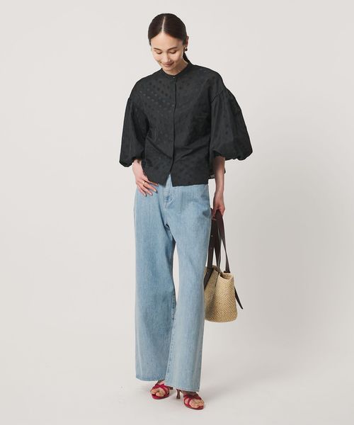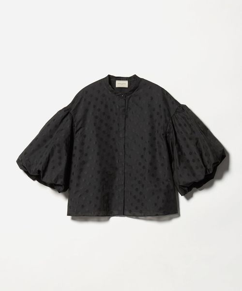 短めの着丈設定と、裏側で吊ったボリュームのあるパフスリーブとのバランスがポイントになっているブラウス。