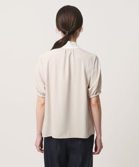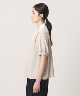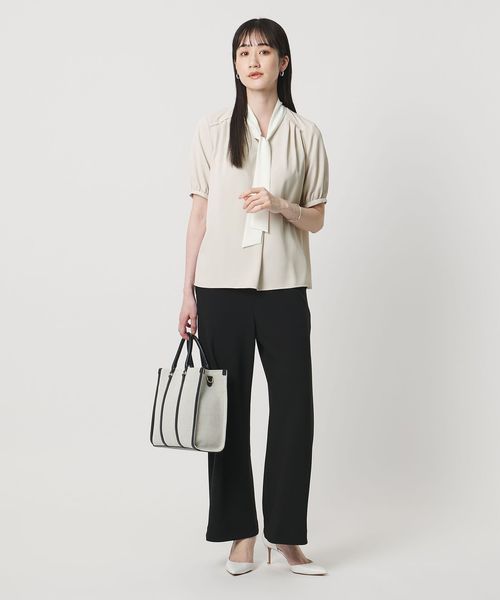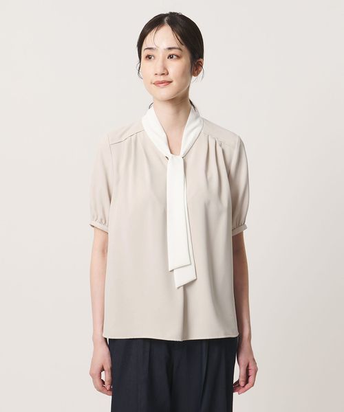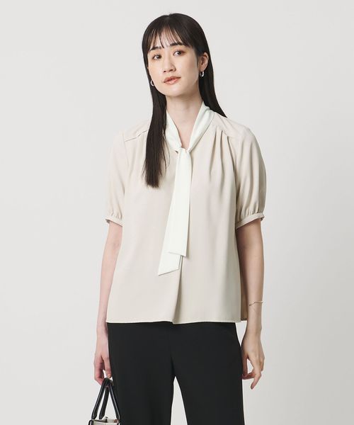 フロントのボウタイが上品なアクセントを添える、フェミニンな印象のブラウス