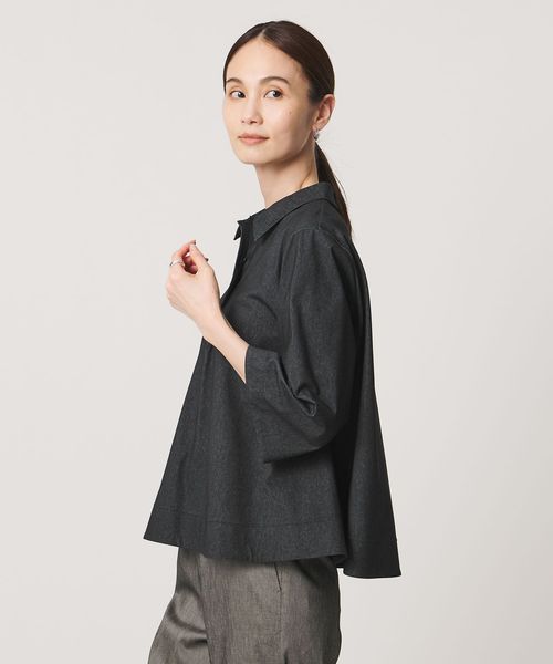 コンパクトなテントラインシルエットとフレアースリーブがデザインポイントです。