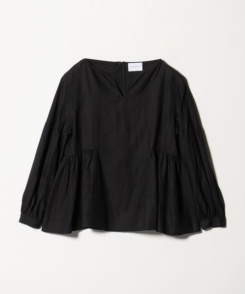 ウエスト脇に入れたペプラムギャザーが、華やかなシルエットを演出するブラウス。