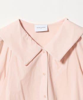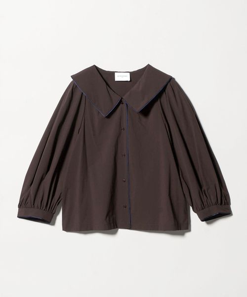 デコルテの開きと襟デザインが、顔まわりを華やかに演出してくれるブラウス。