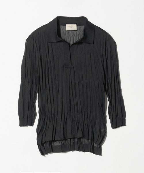 程よいシアー感のある素材に、上品なランダムプリーツのシワ加工を施したニットトップス。