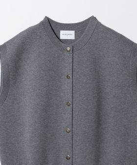 フロントのドットボタンがアクセントになった、リラックス感のあるシルエットのベスト。