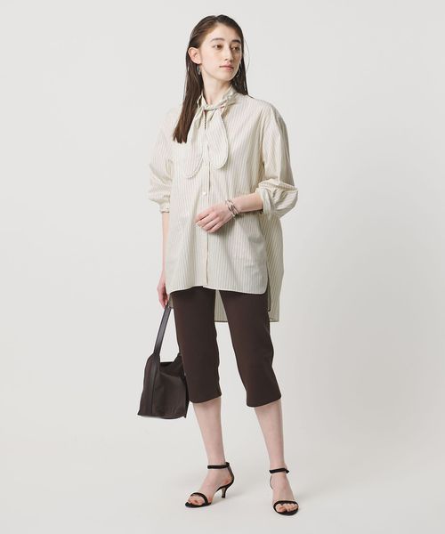 着こなしが広がる、レースタイ付きチュニックシャツ