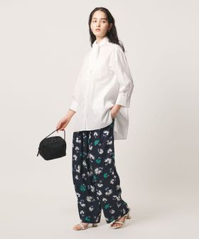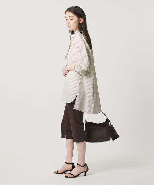 トレンドのスラックスやデニムなど、パンツスタイルとのコーディネートがおすすめ。