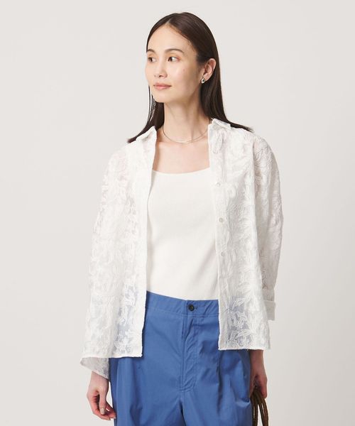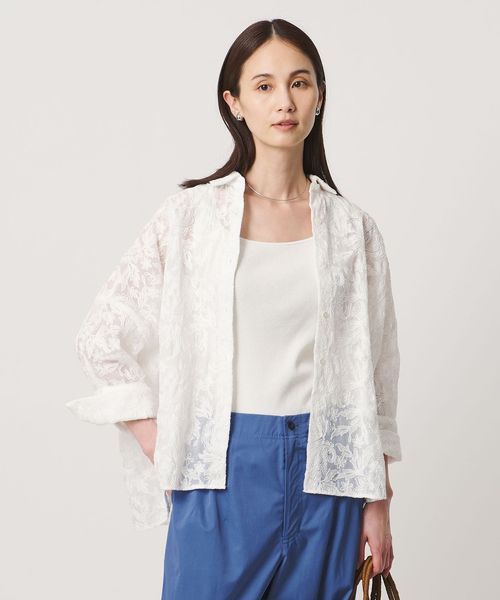 シアーなベース生地に、綿コード糸で施した刺繍をあしらいました。