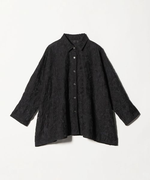 羽織りとしても活躍するシャツスタイルを、素材感でアップデートした一着。