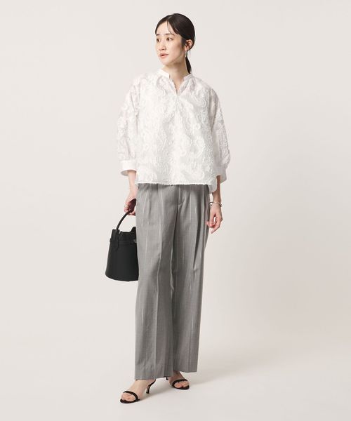 バンドカラー×スキッパー仕様のフロントデザインが、顔周りをすっきりと見せてくれるブラウス。
