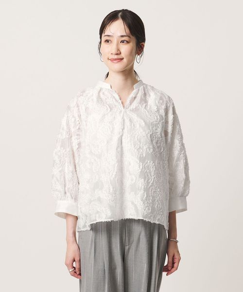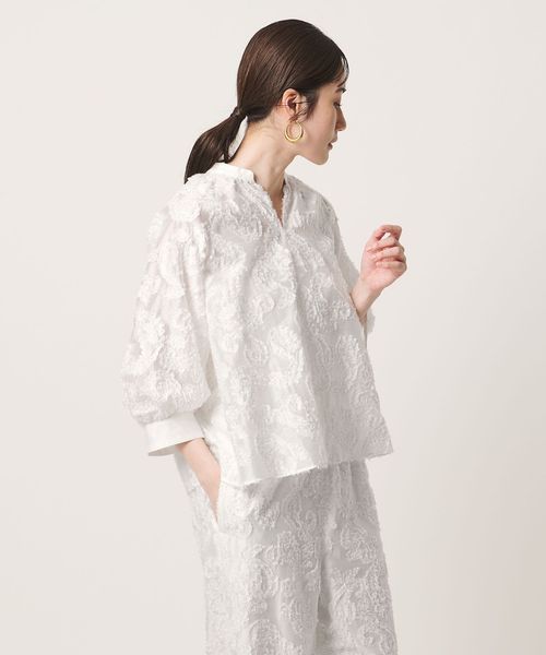 さりげない煌めきが華を添える、フェミニンジャガードブラウス