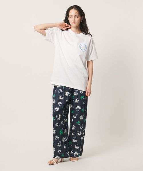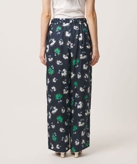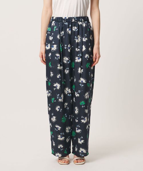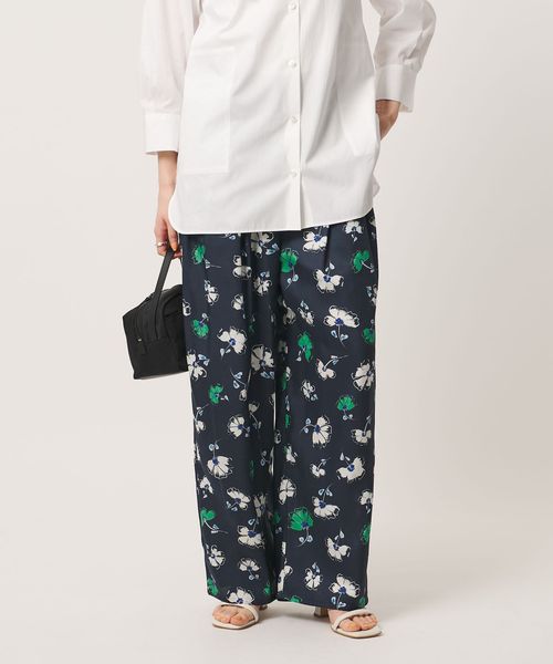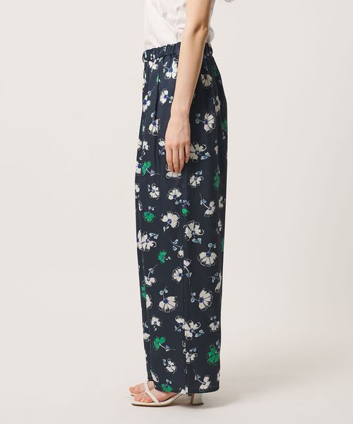中花の飛び柄が上品な印象を与えるプリントパンツ。