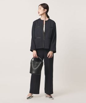 同素材シリーズのパンツとのセットアップはもちろん、デニムなどのカジュアルパンツや、きれいめなドレスワイドパンツとのスタイリングもおすすめです。