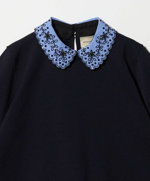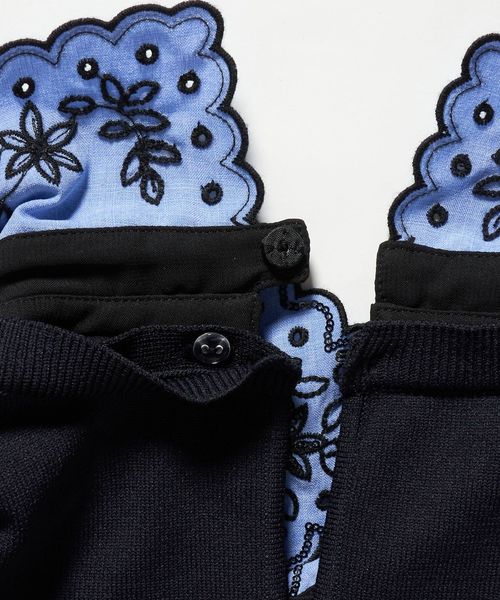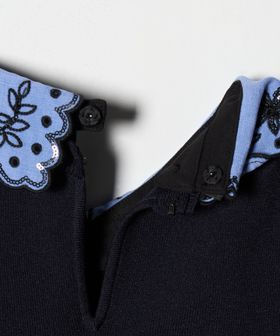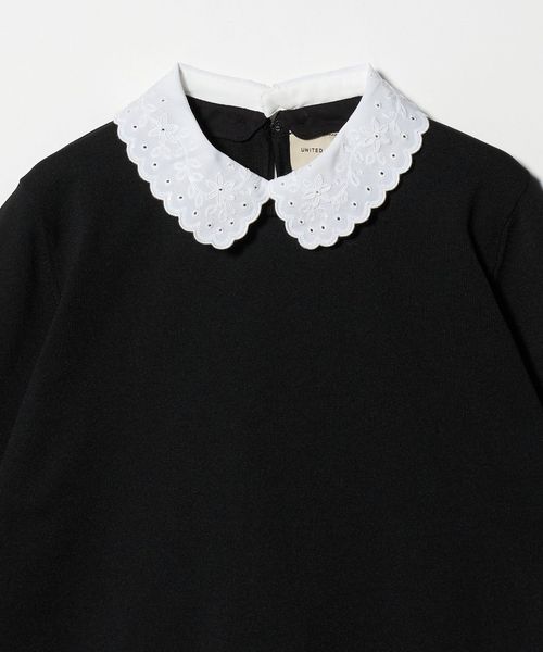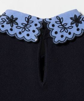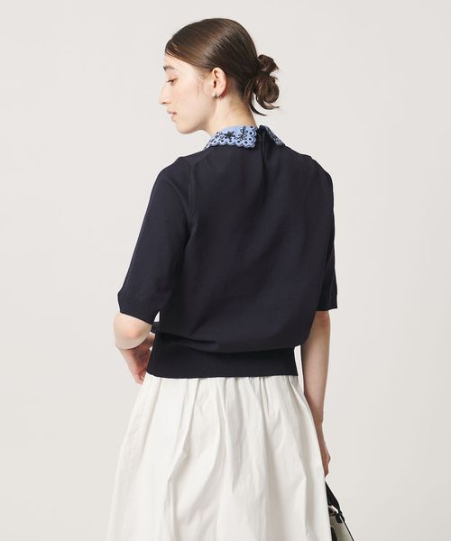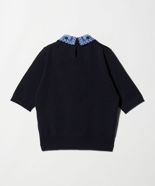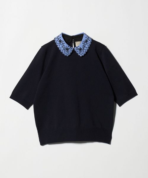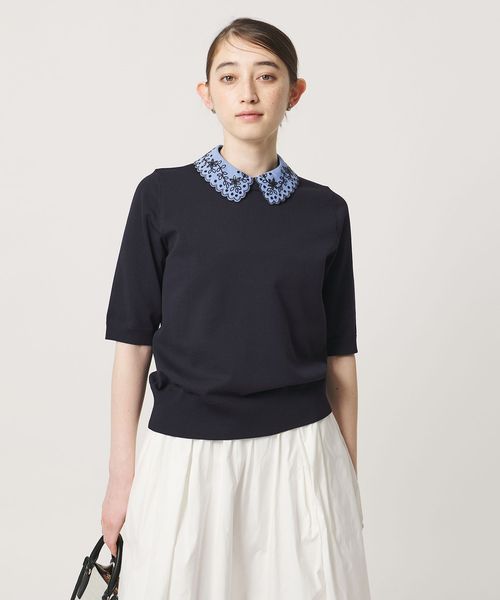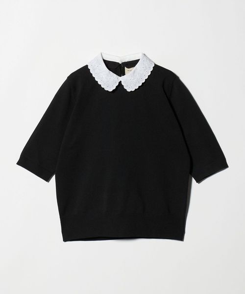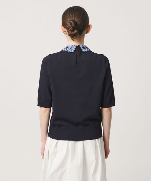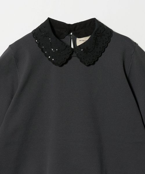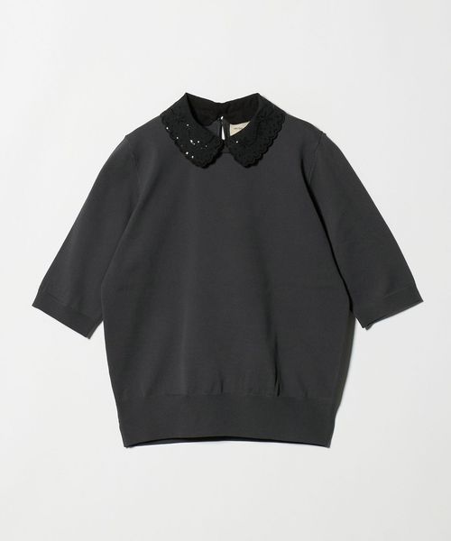 控えめにきらめく小さなスパンコール刺繍を施した、取り外し可能な襟がポイントのニットトップス。