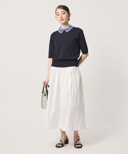 すっきりとしたシルエットで、きれいめパンツを合わせたスタイルはもちろん、フェミニンなスカートとも好相性。