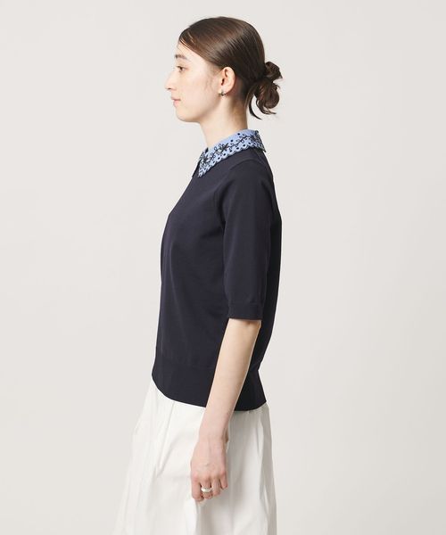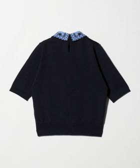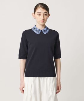 襟を外してシンプルなクルーネックニットとしても着用でき、表情の変化が楽しめるのも嬉しいポイント。