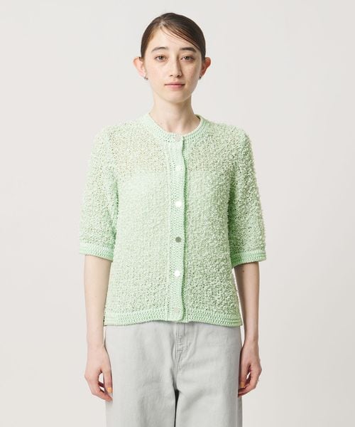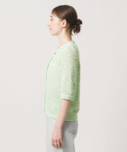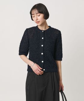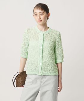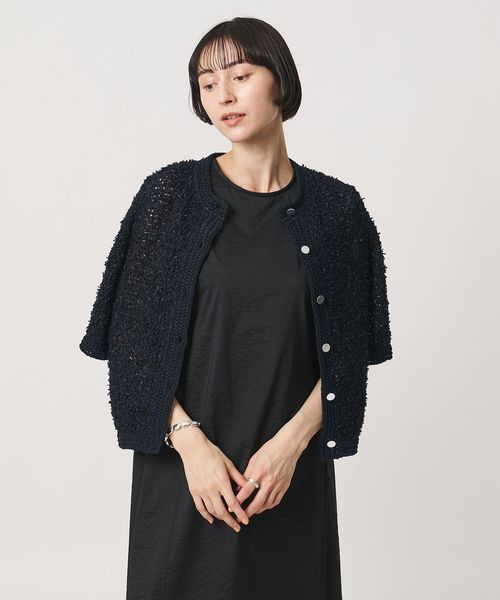 コンパクトな丈感に、表情豊かな編地が映えるニット羽織り。