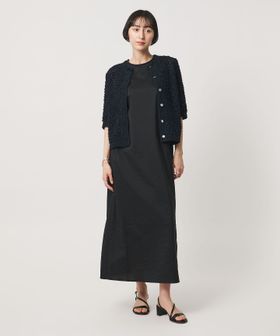 スリムテーパードからタイトスカート、ワイドパンツまで、さまざまなボトムスと好相性。