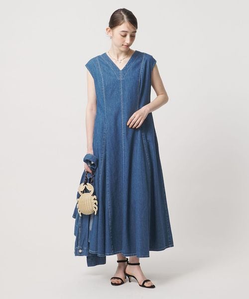 ステッチ Vネック デニムワンピース