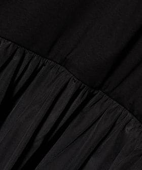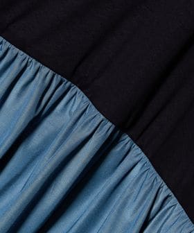 スカート部分は、光沢感のあるタテ糸と綿を組み合わせ、張りとやわらかさを両立した素材。