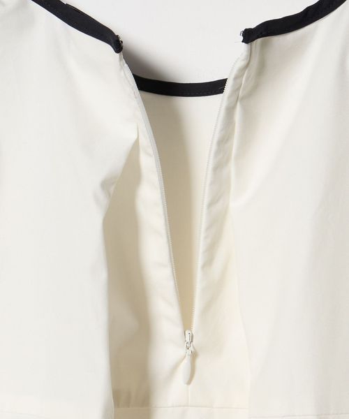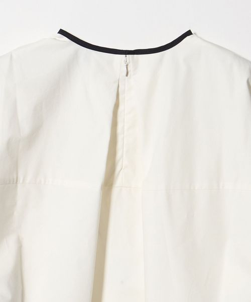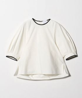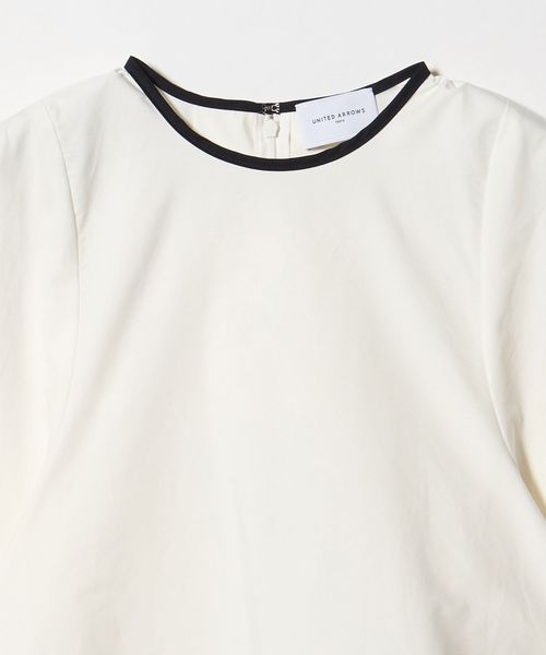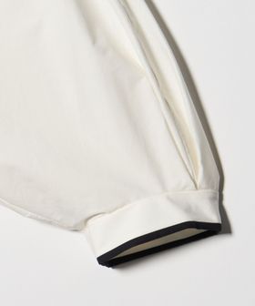 襟ぐりと袖口の配色がスタイルのアクセントに。