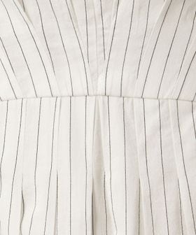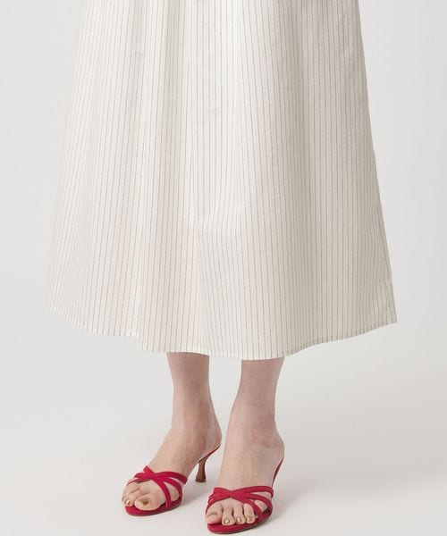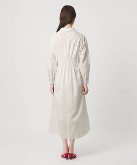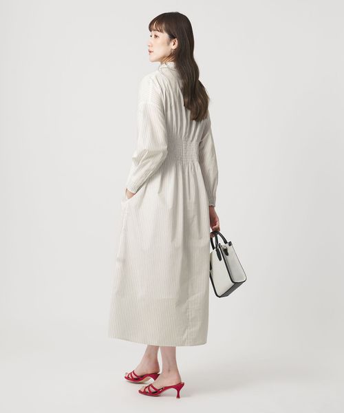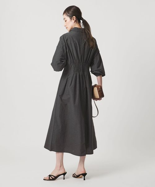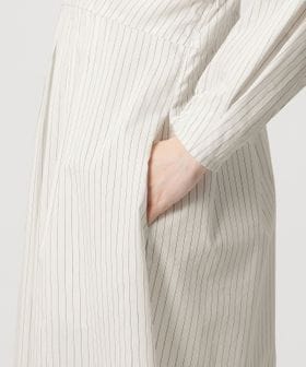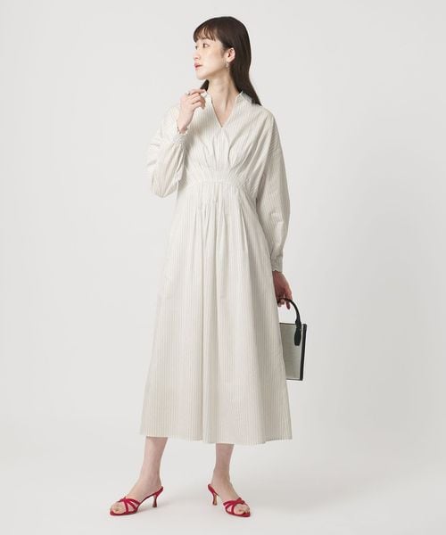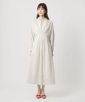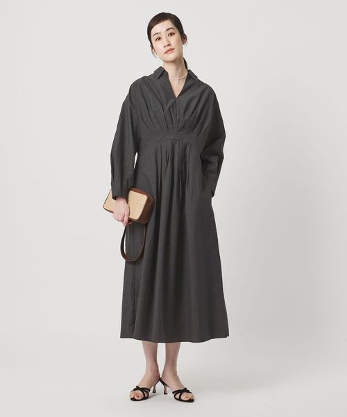 ウエスト切替えのタックでウエストマークし、裾に向けてやや広がるシルエットがポイントのタックワンピース。