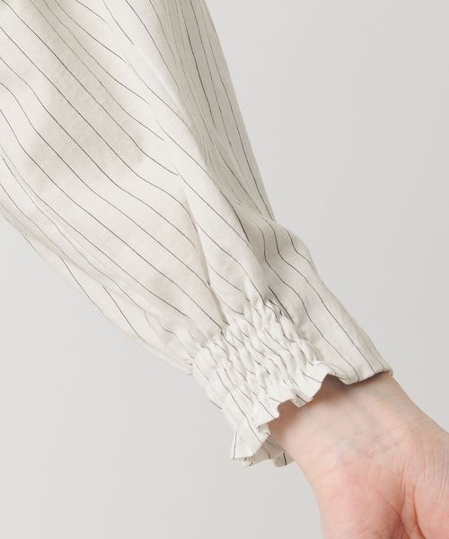 袖は8分丈設定で袖口のシャーリングで丈調整が可能です。