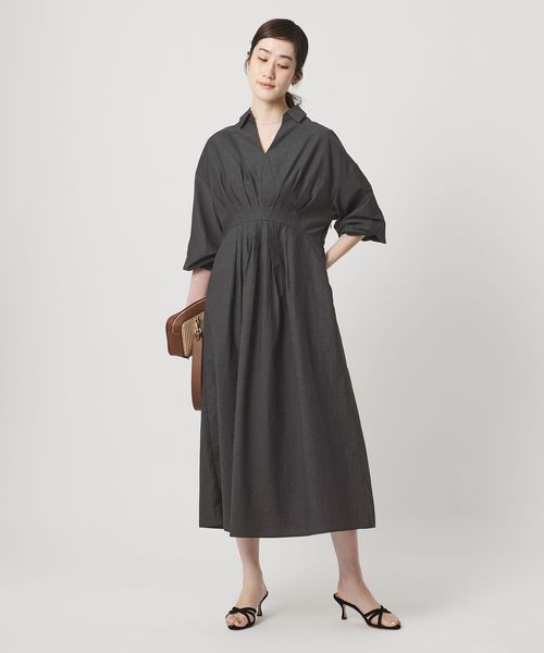 ウエストを美しく魅せる、上品なタックデザインワンピース