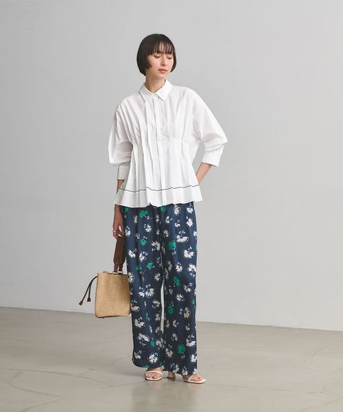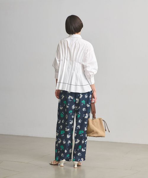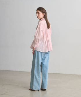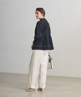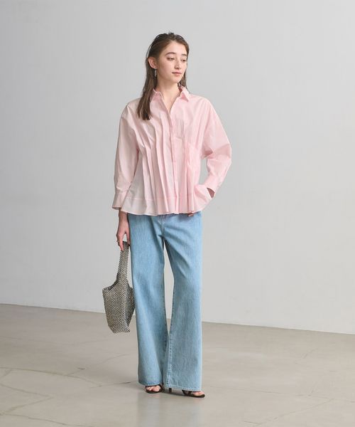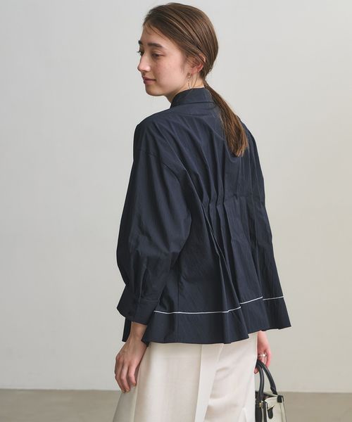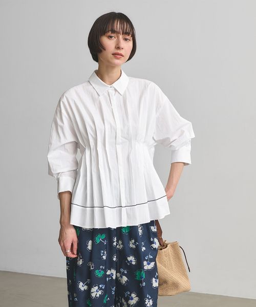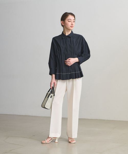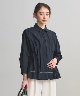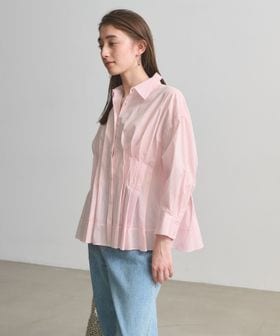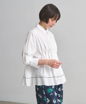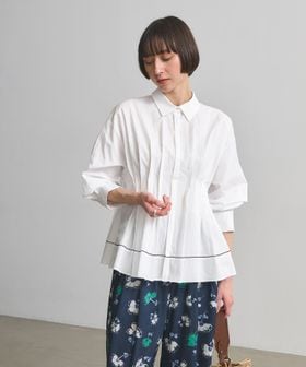 縦のラインを強調し、ウエスト周りにタックを入れることで自然なスタイルアップ見えを叶えるシャツブラウス。